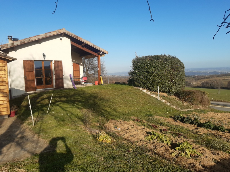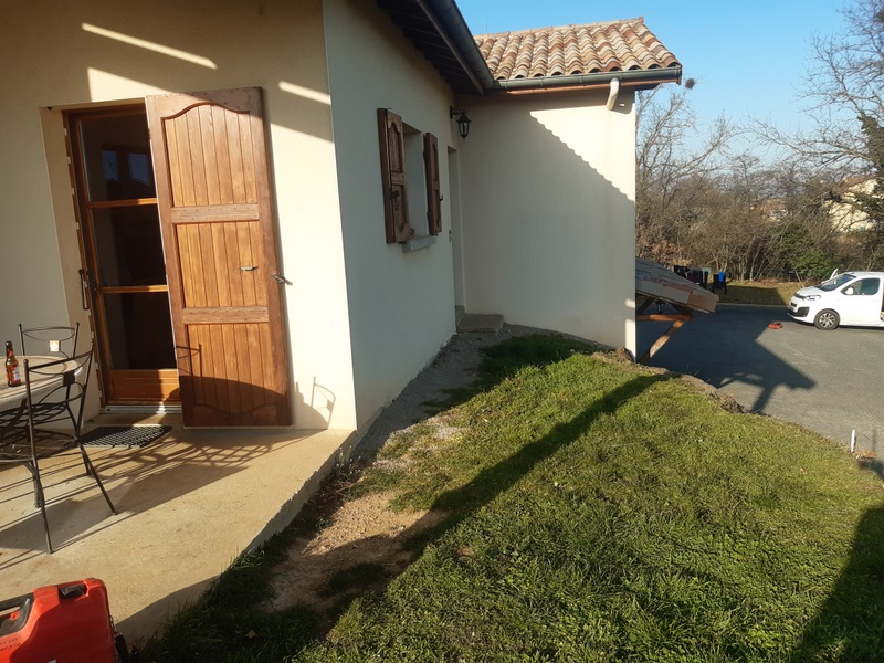 De plus nous avons réalisé une bande accès piétons permettant éventuellement l’accès de personnes handicapées à l’aide d’un fauteuil soit électrique, soit manuel, avec le concours d’une personne bienveillante, n’ayant pu respecter la pente PMR vu le dénivelé et le cheminement souhaité par nos clients.