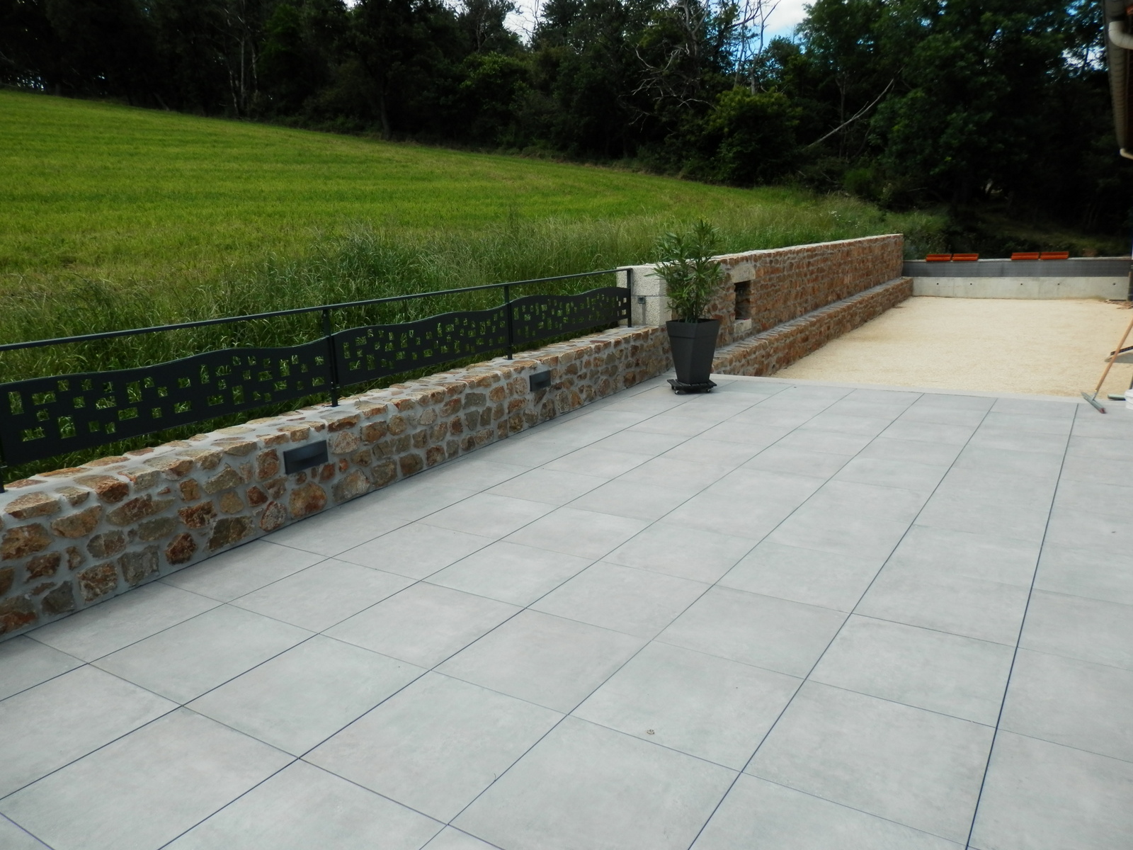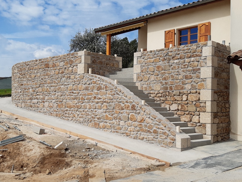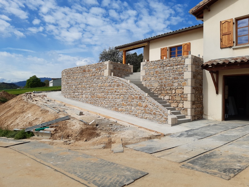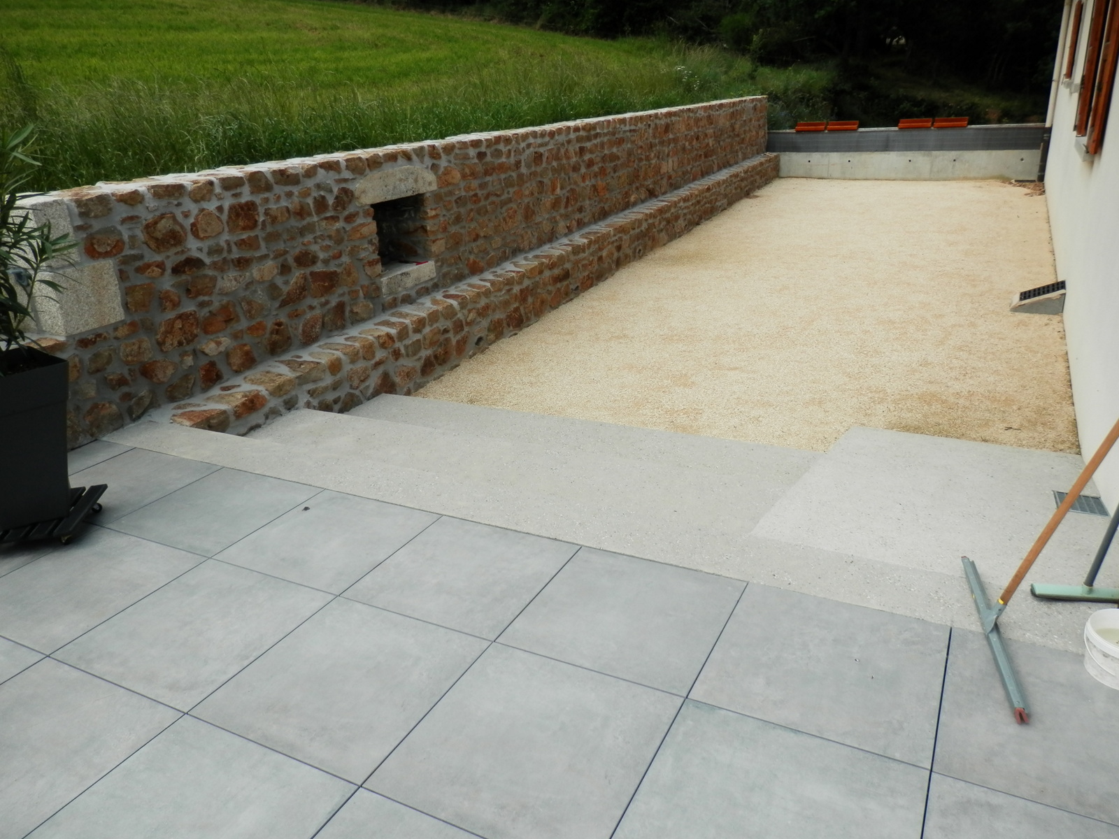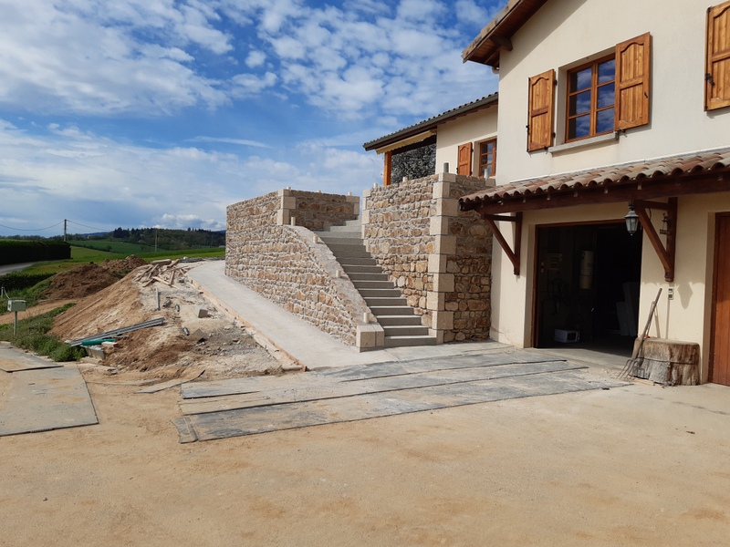Agrandissement d'une terrasse, création d'un escalier pierre et création d'une rampe accès piéton
