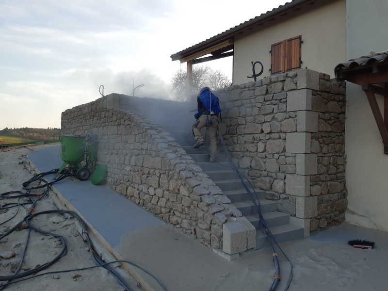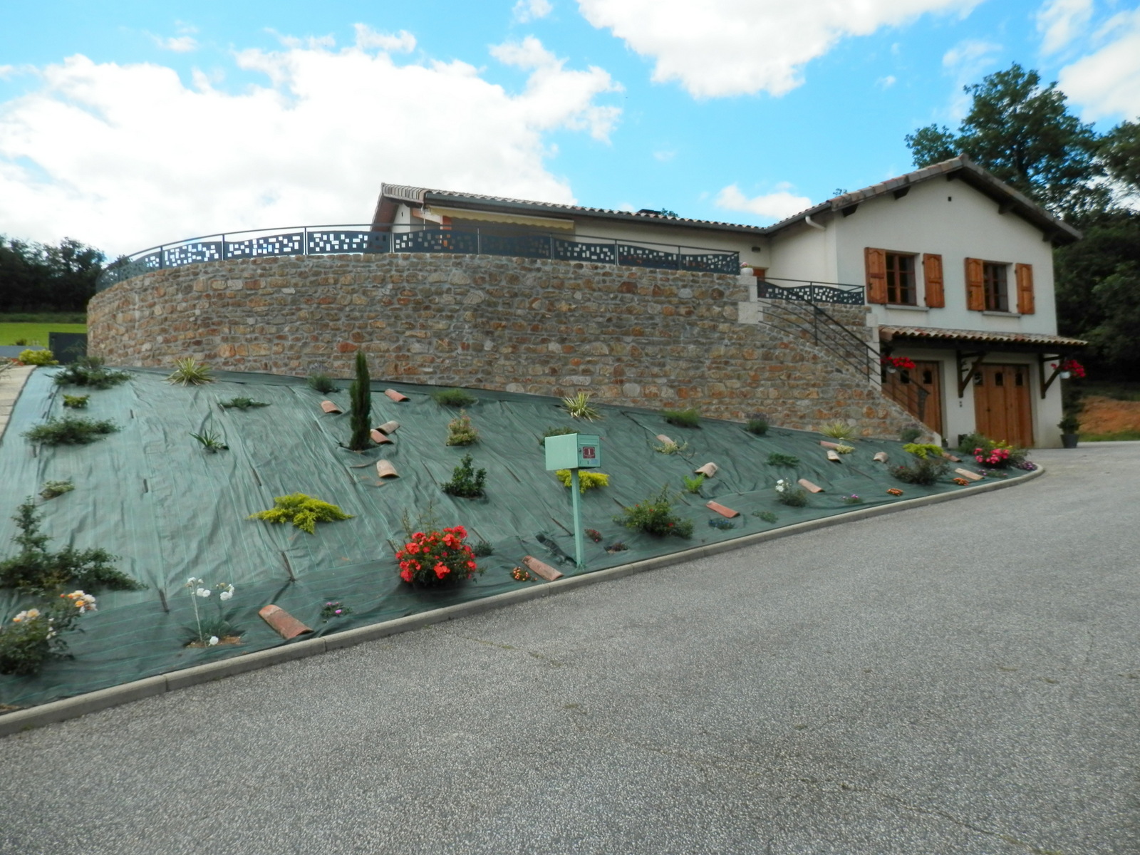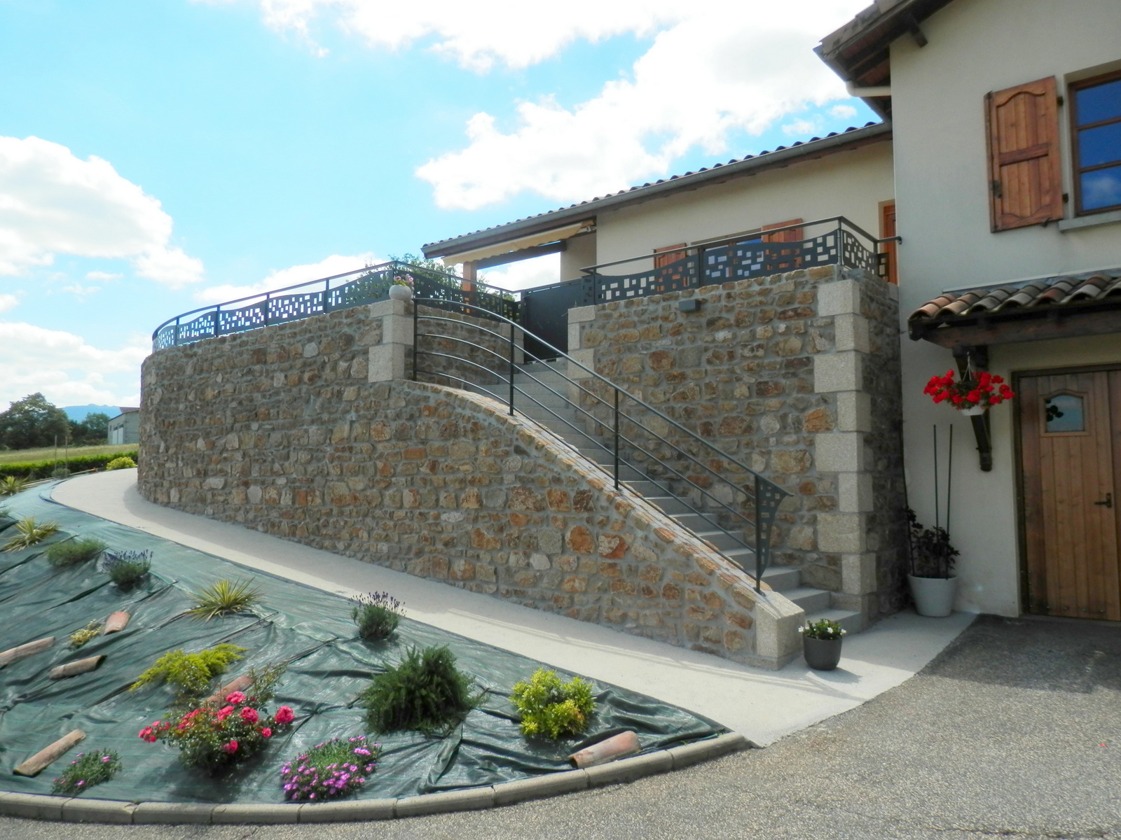 Agrandissement d'une terrasse, création d'un escalier pierre et création d'une rampe accès piéton